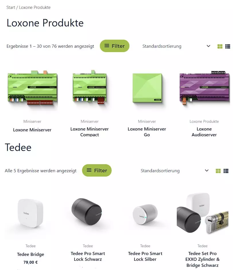 Loxone- & Tedee Produkte erhältst du direkt in unserem Smart Home Webshop oder nach individueller Beratung und Angebotserstellung.